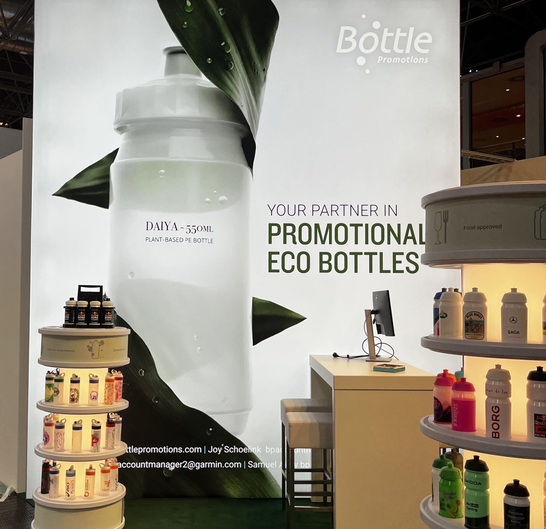 Visit us at the European trade shows! Discover our extensive collection of water bottles, including eco-friendly models and a range of stylish print designs. Feel free to make an appointment with us or simply drop by – we look forward to seeing you!